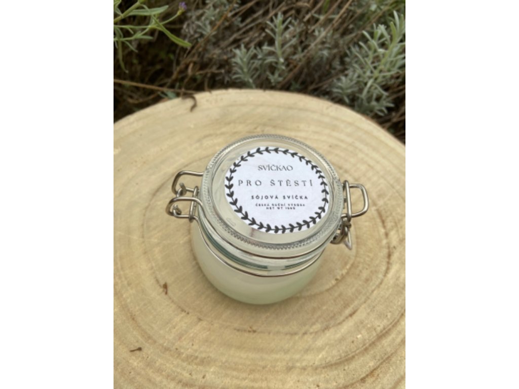 Objevte radost a pohodu s ručně vyráběnou svíčkou "Pro štěstí", která přináší do vašeho domova sladce citrusovou vůni plnou svěžesti. Tato luxusní svíčka je vyrobena ze 100% přírodního sojového vosku, který zajišťuje čisté a dlouhotrvající hoření. Dřevěný knot jemně praská, vytváří uklidňující atmosféru a dodává svíčce přirozený šarm.