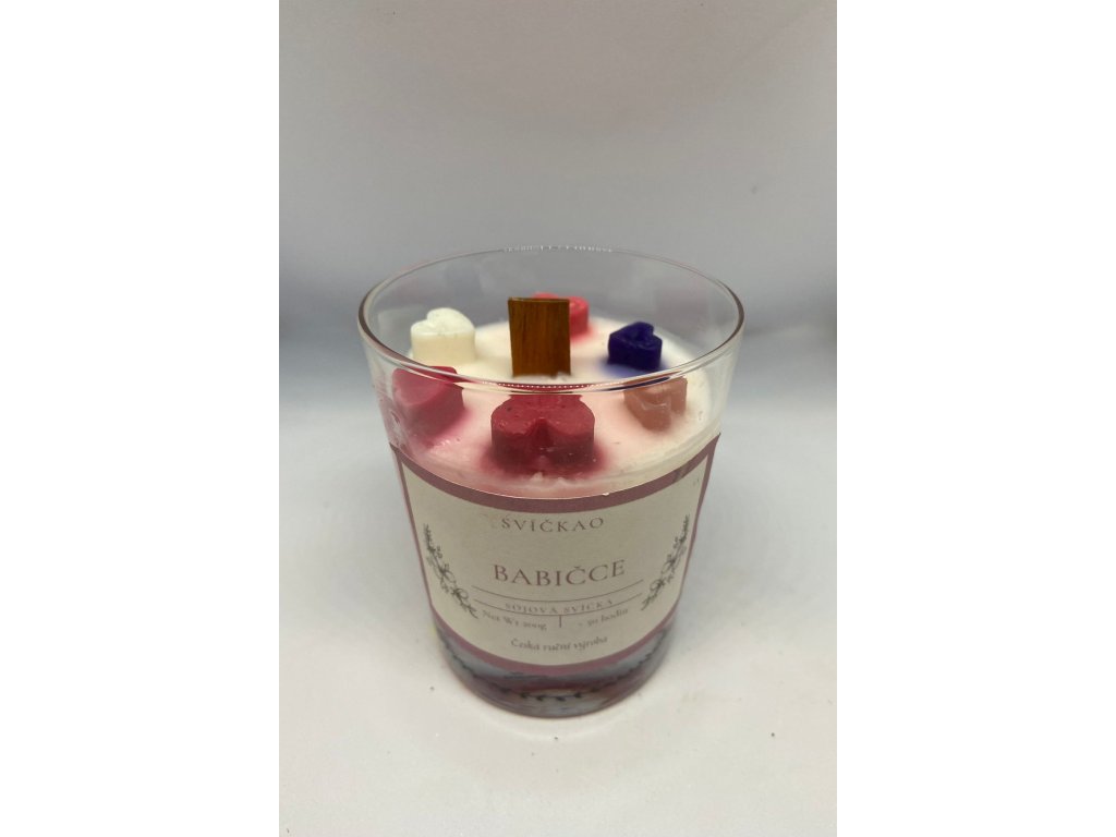 Darujte své babičce kousek lásky a péče s ručně vyráběnou svíčkou "Babičce". Tato svíčka je vyrobena ze 100% přírodního sojového vosku, který zajišťuje čisté a dlouhotrvající hoření. Dřevěný knot jemně praská, vytváří uklidňující atmosféru a dodává svíčce přirozený šarm. Sladká květinová vůně naplní její domov krásnou a jemnou vůní, která evokuje vzpomínky na květinové zahrady a bezstarostné chvíle.