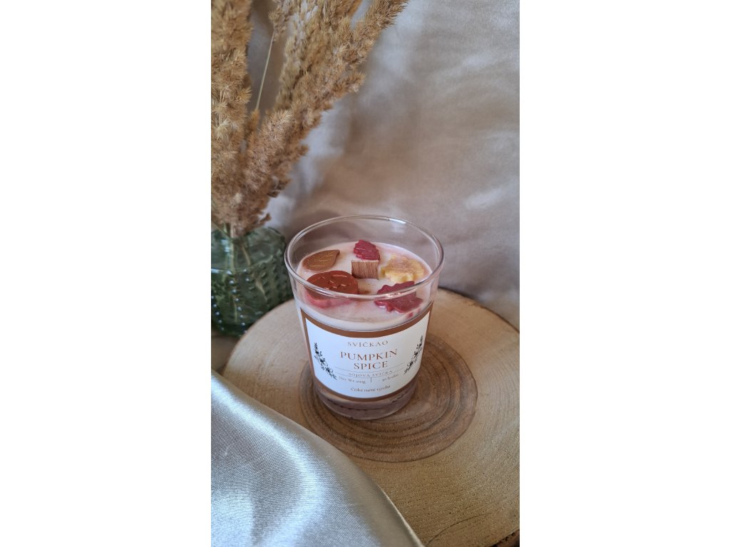 Objevte kouzlo podzimu s naší ručně vyráběnou svíčkou "Pumpkin Spice". Tato luxusní svíčka je vyrobena ze 100% přírodního sójového vosku, který je šetrný k životnímu prostředí a hoří déle než běžné svíčky. S dřevěným knotem, který při hoření jemně praská, navozuje útulnou atmosféru vašeho domova. Vůně dýňového koření vás obklopí teplými tóny skořice, hřebíčku a muškátového oříšku, což je ideální volba pro vytvoření příjemné a relaxační nálady. Perfektní dárek pro milovníky přírodních produktů a podzimních vůní.
