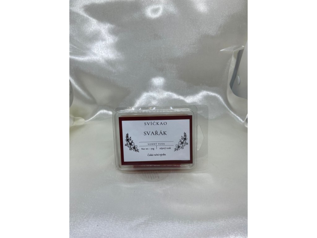 Vychutnejte si atmosféru zimních večerů s ručně vyráběným vonným voskem do aromalamp "Svařák". Tento vonný vosk, vyrobený ze 100% přírodního sojového vosku, je ideální pro milovníky autentických, přírodních vůní. Jeho hřejivá vůně svařeného vína s tóny skořice, hřebíčku a citrusů přinese do vašeho domova kouzlo zimních trhů a sváteční pohody. Naše vonné vosky jsou perfektní volbou pro ty, kteří si cení kvalitních ručně vyráběných produktů a hledají dlouhotrvající a intenzivní aroma. Dopřejte si tu pravou vánoční atmosféru a nechte svůj domov provonět vůní, která zahřeje na duši.
